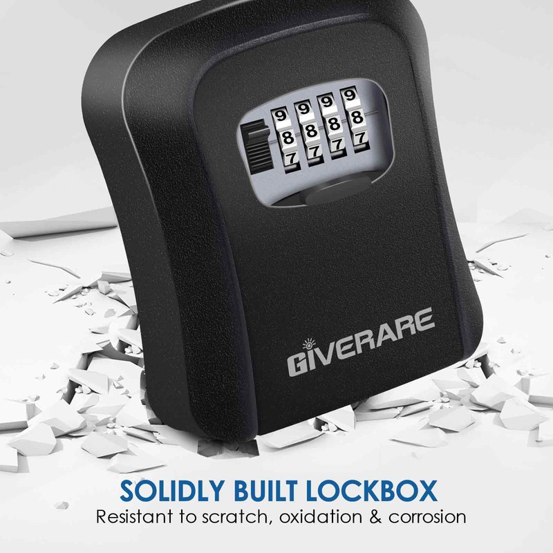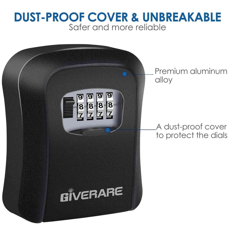 - HIGH SECURITY: Every GIVERARE key lock box is solidly built with heavy duty aluminum alloy coated with environmentally powder, it is tightly sealed & waterproof, resistant to hammering, sawing & cutting. Come with a dust-proof cover to protect the dials