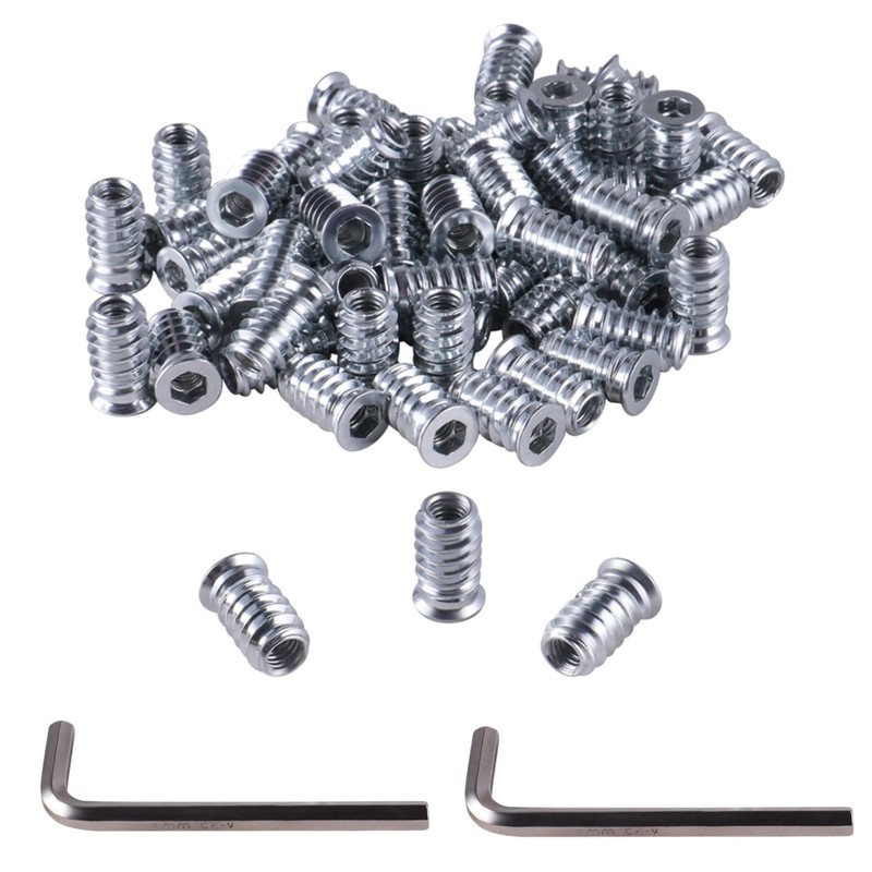 - Practical quantity. You will receive 60 pieces GIVIHGETI threaded insert wood M8 x 20 mm and 2 pieces wrenches, suitable for different types of wood, including hardwood, softwood and composite wood. The installation length is 20 mm, the bore diameter is 8 mm and thus meets your installation requirements