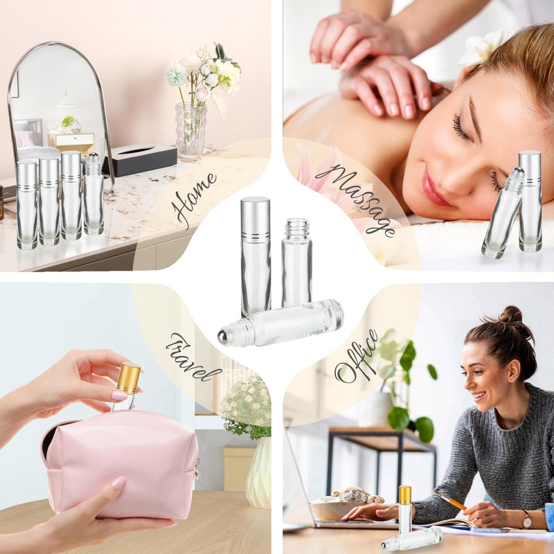 - 【Portable and Convenient】Capacity:10ml, Bottle Size: 0.77 in × 3.33in. Our roller bottles for oils are so mini that you can easy to carry with wherever you go, making them perfect for use at home, go out, work, or on the go. The roller bottles allow you to store essential oil, essence, perfume, or any other liquids that meet your needs of daily care.