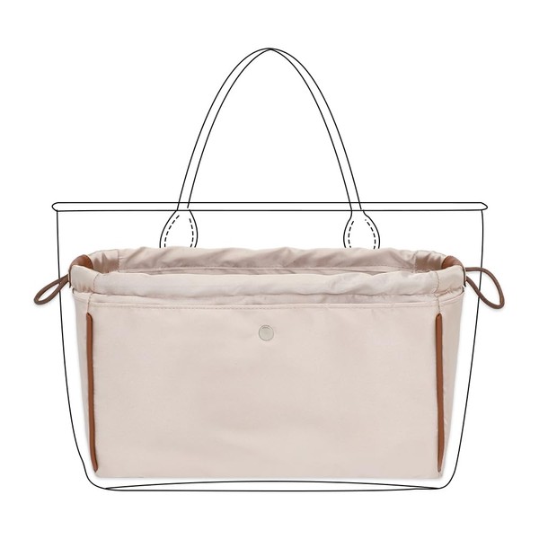 - Our handbag organizer insert has six pockets and a cup holder inside, and a total of five pockets on the outside, three of which have hidden buckles. To prevent items from falling off, we also have a drawstring design