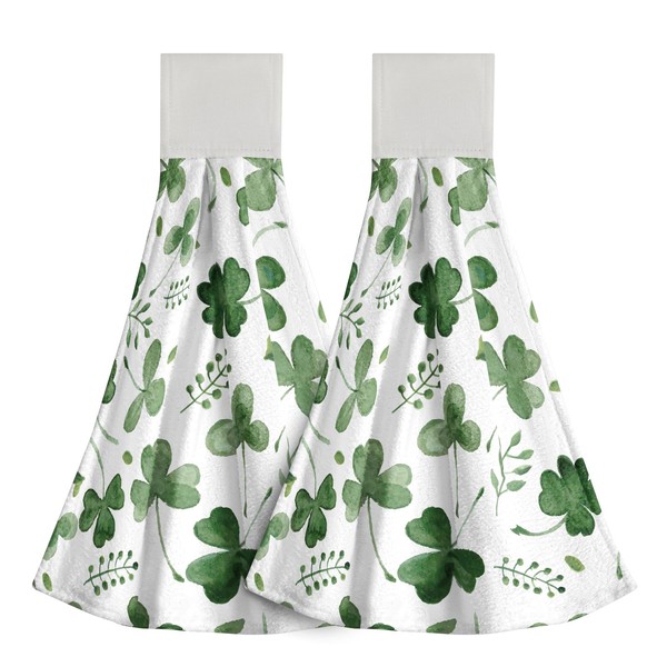 Giwawa Clover Hanging Kitchen Towel Set of 2 St Patricks Day Lucky Shamrocks Hand Tie Towel with Loop & Hook Sage Green Leaf Soft Washcloth Dish Tea Bar Towel for Bathroom Laundry Room Holiday Decor