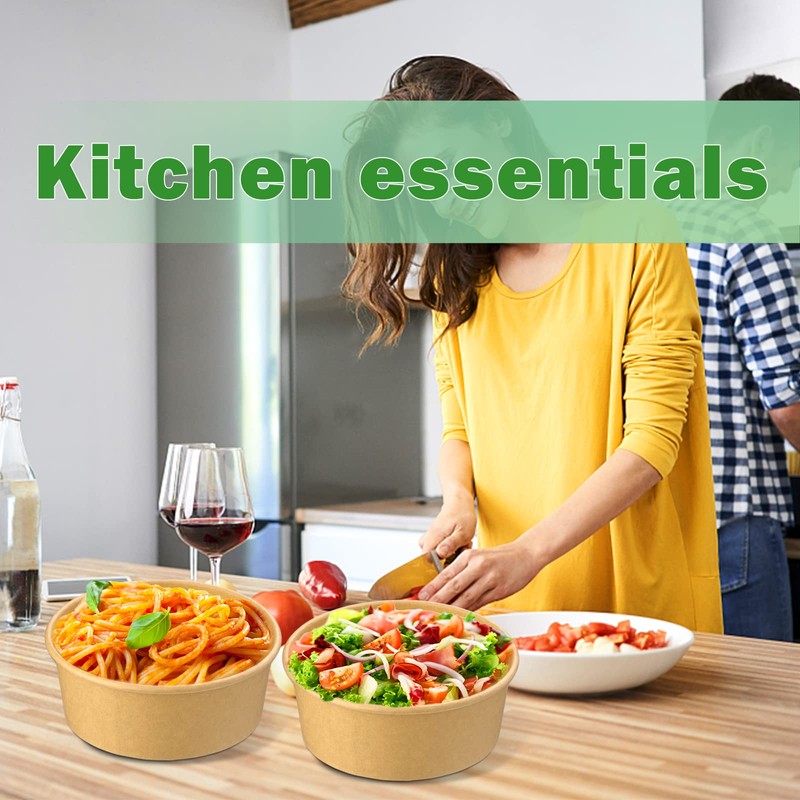 - Suitable Capacity: Disposable Food Containers 750 ML size can meet your daily needs, round shape kraft paper food cups can store chicken, rice and vegetables. It is also very suitable for pasta and salads. very suitable for BBQ, Gatherings and Parties