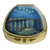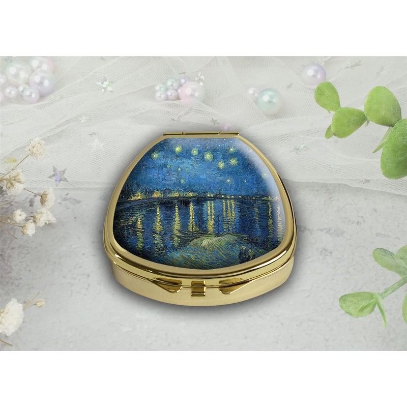 Gixpop Pill Box Starry Night on The Rhone River Van Gogh Pill Case Pocket Purse Portable Travel Tablet Holder Organizer Glass Cover Decorative Fan Shap