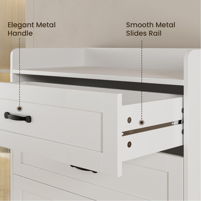 - DURABLE & STURDY CONSTRUCTION: Crafted from high-quality wood, this wood storage dresser with deep drawers features a durable white finish and ensures long-term strength and reliability, with smooth, easy-glide drawers for effortless access