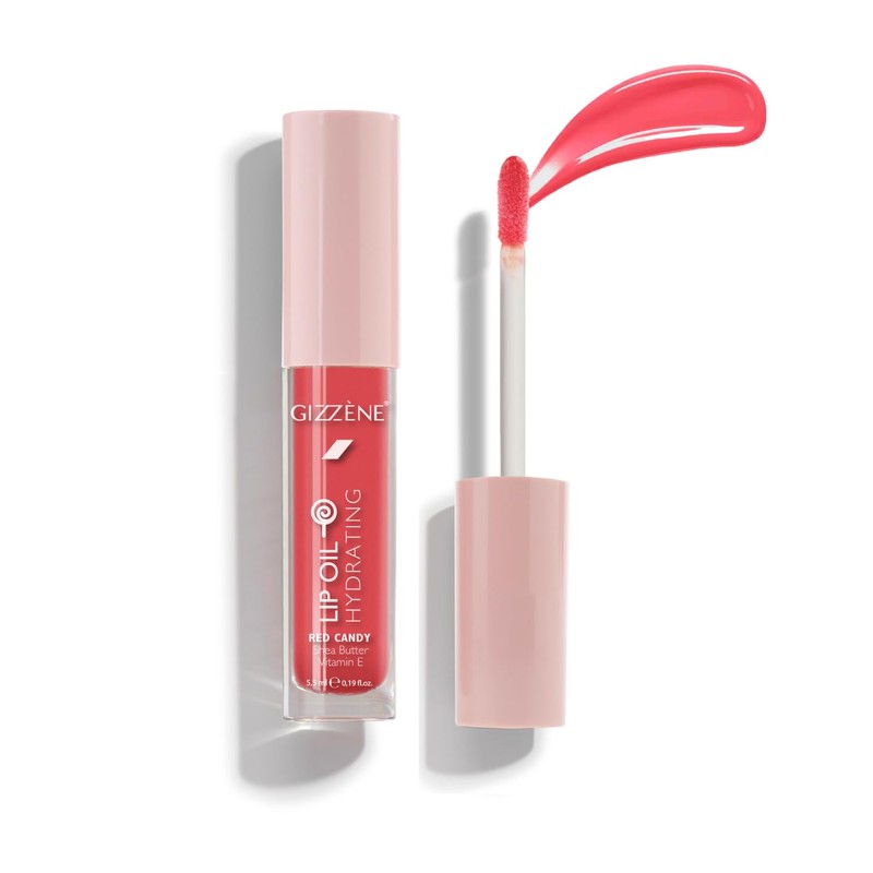Gizzene Lip Oil Stain with Vitamin E & Shea Butter – Non Sticky Hydrating Tinted Lip Oil for Dry Lips – Lip Gloss with Glossy Finish for Healthy, Fuller Lips – Red Candy Flavour (1 oz.) (Dark Pink)