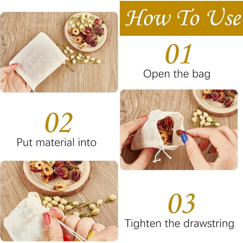 • [Great for Straining]-Our cotton sachet bags has a small and rich fine mesh design, which can help strain loose tea, scented tea or spices, giving off the fragrant taste