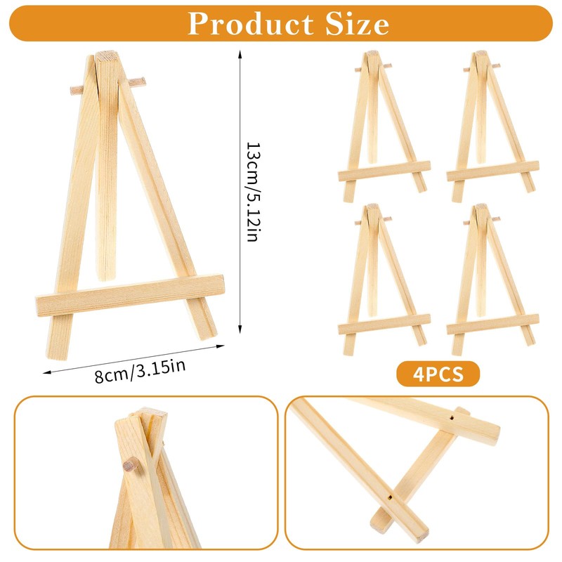 Gjinxi 4 Pack Mini Easel for Display, Small Wood Easels for Painting, Small Tabletop Easel Mini Easels for Art, Triangle Frame Easel Stand for Displaying Canvas Paintings Weddings Business Photos