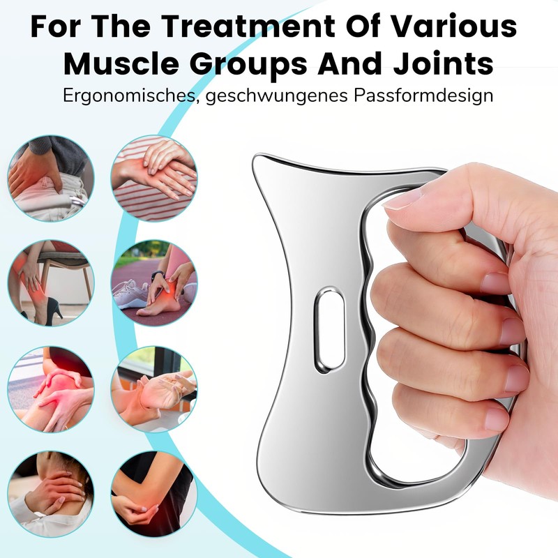 - Multi-Area Application: The unique design of the stainless steel gua sha tool is suitable for massaging multiple areas, including the back, shoulders, neck, arms, and calves. Whether it's relaxing large muscle groups or providing delicate joint care, the scraping tool can easily handle it, making it the perfect choice for physical therapy and everyday relaxation.