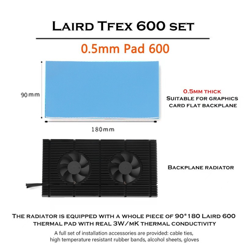 GK6 Dual PWM Fan VRAM Heatsink Adjustable Speed Backplane Memory Cooling Cooler for 3080 3070 Radiator0.5mm Pad 600