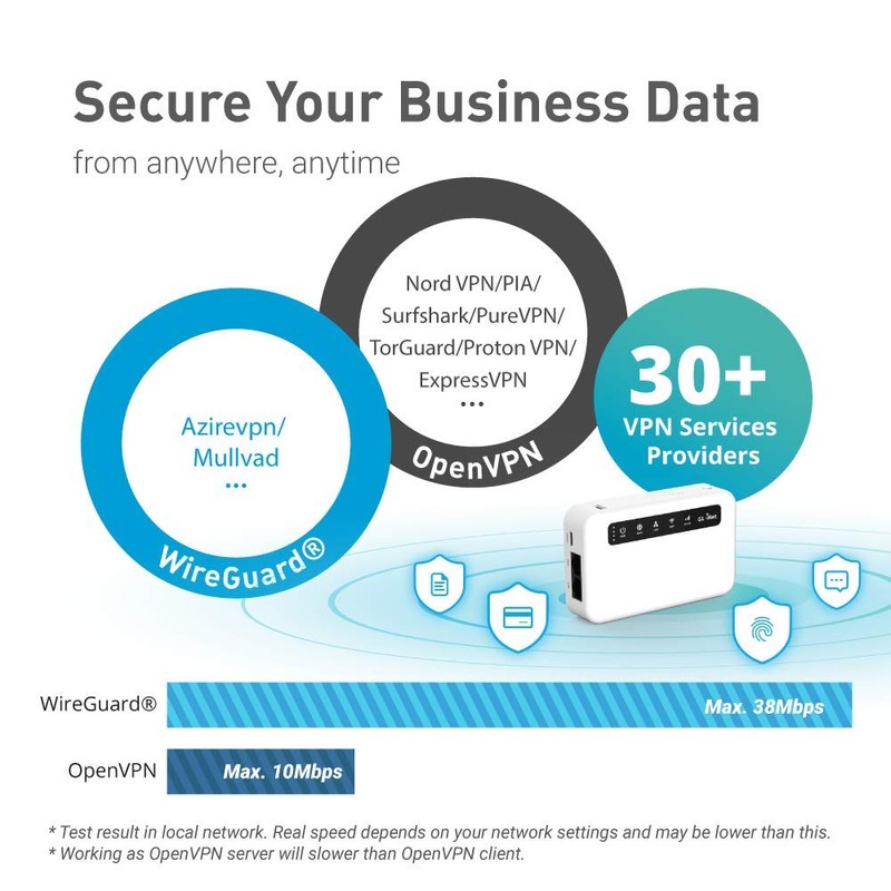 • 【SECURITY & PRIVACY】OpenVPN & WireGuard pre-installed, compatible with 30+ VPN service providers. With our brand-new Web UI, you can set up VPN servers and clients easily. IPv6, WPA3, and Cloudfare supported. Level up your online security.