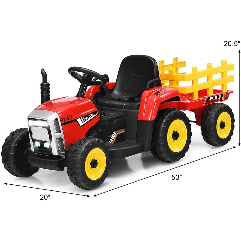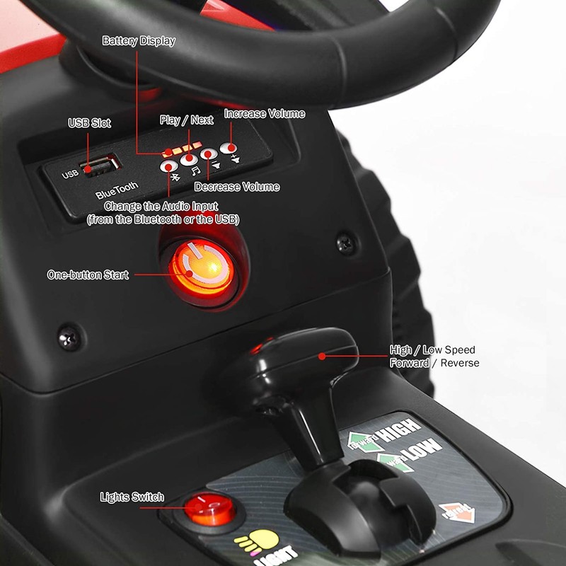 - đăAttractive Toy for Kidsă: With its stunning appearance, easy-to-control shift handle and horn steering wheel, this tractor is dedicated to providing the most authentic driving experience for your children. In addition, it has a built-in audio device, which can play music input through USB port. Leave precious and interesting driving experience for children
