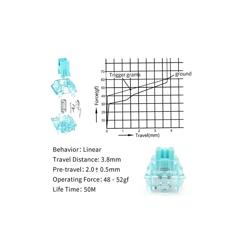 Glacier Skyloong Silent Key Switches (105 Pieces) Pre-Lubed 5-Pin with Free Switches Puller Included for Mechanical Keyboards (Blue, 105 PCs, Linear)