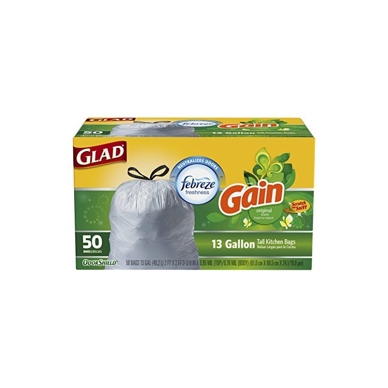 Glad OdorShield Gain Original Tall Kitchen Drawstring Trash Bags 13 gal 50 ct