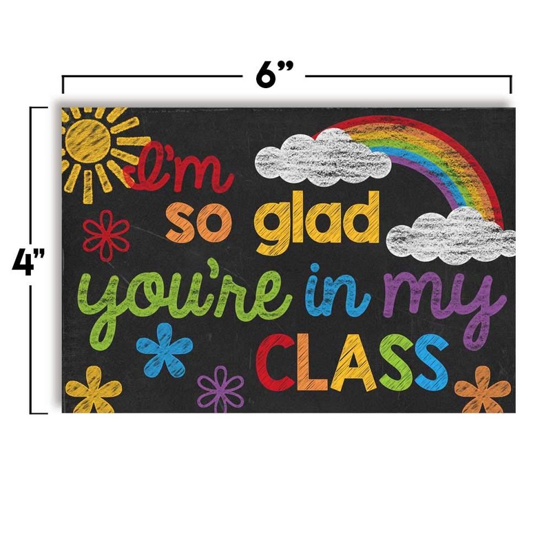 Glad You're In My Class Colorful Chalkboard Themed Blank Postcards For Students From Teachers, 30 4"x6" Fill In Notecards by AmandaCreation