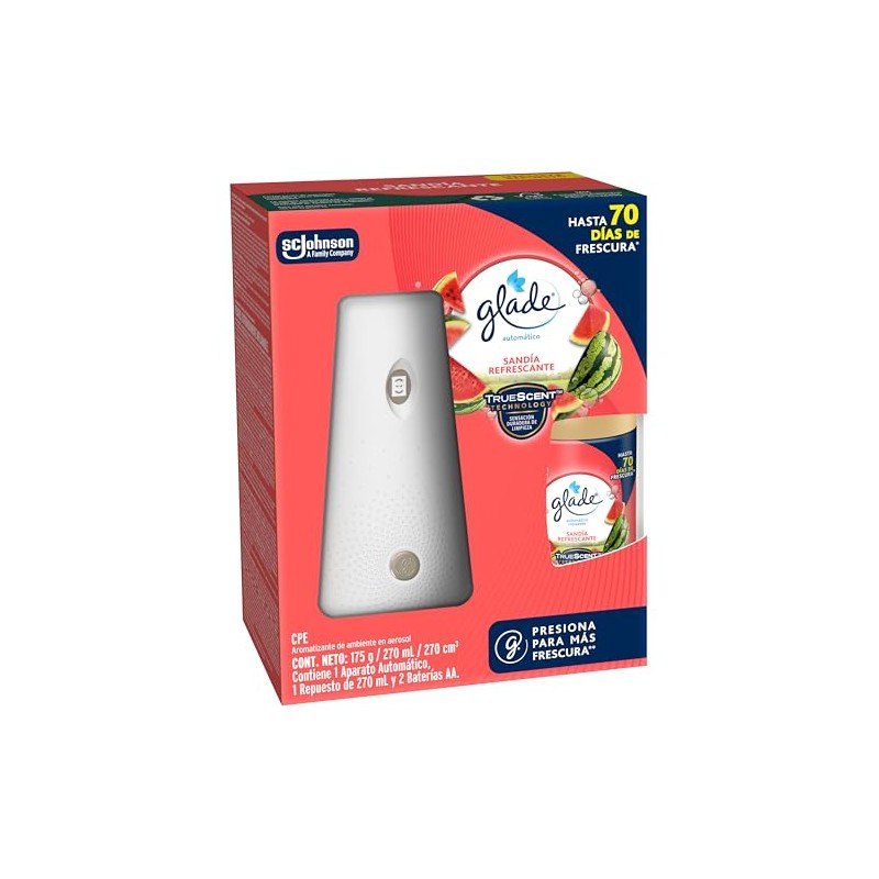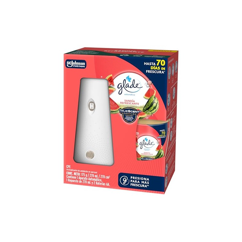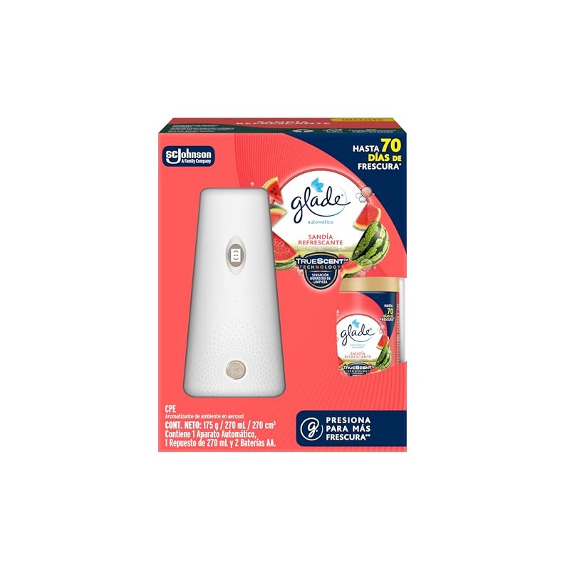 Glade - Glade Aromatizante Automático, Aroma Sandía Refrescante, Frescura Programable Para tu Hogar durante 70 Días, Aparato y Repuesto de 175g. 🏆 Reconocido por su excelente relación calidad-precio. Materiales de alta gama y acabados premium. 💝 Perfecto como regalo especial. Ideal para quienes buscan lo mejor en calidad y estilo. Producto auténtico con satisfacción total asegurada. ¡No te quedes sin el tuyo y aprovecha esta oportunidad única!