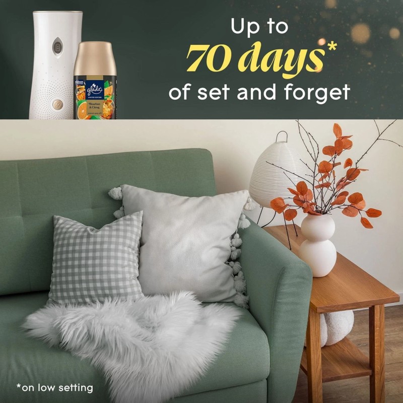 Turn up the season with a burst of freshness with Glade Automatic Spray Air Freshener Refills in the limited-edition Bourbon & Citrus fragrance. This soothing air freshener scent captures the essence of bourbon and a twist of orange, offering a cozy experience that helps you unwind and recharge.