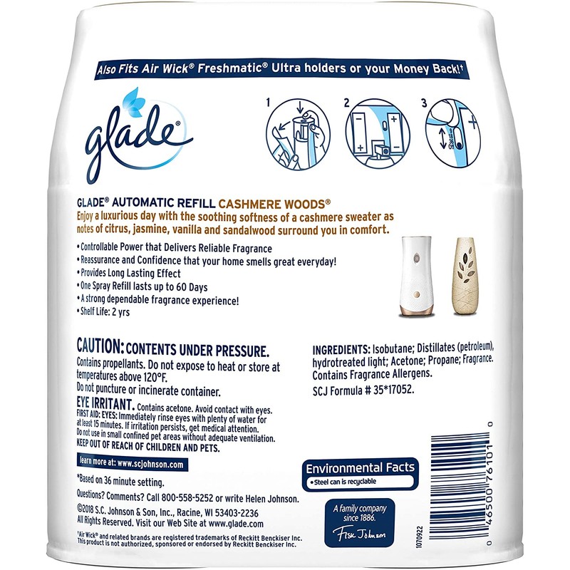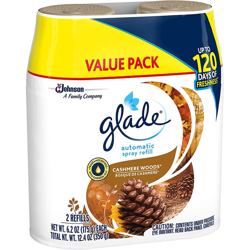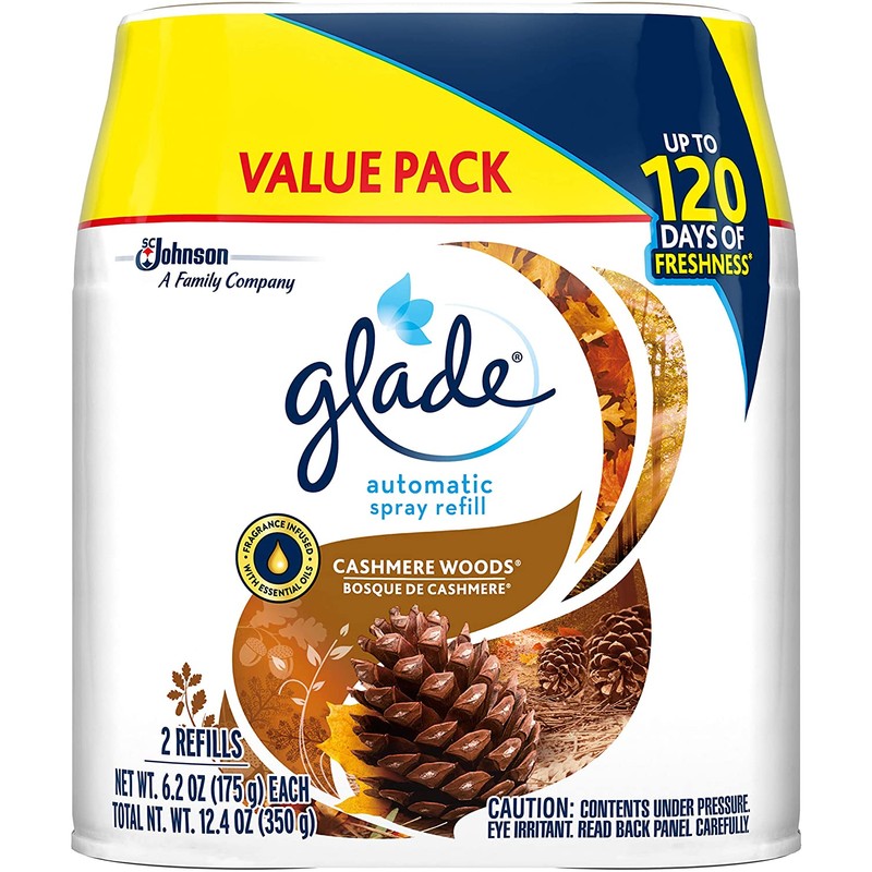 Glade Automatic Spray Refill, Air Freshener for Home and Bathroom, Cashmere Woods, 6.2 Oz, 2 Count