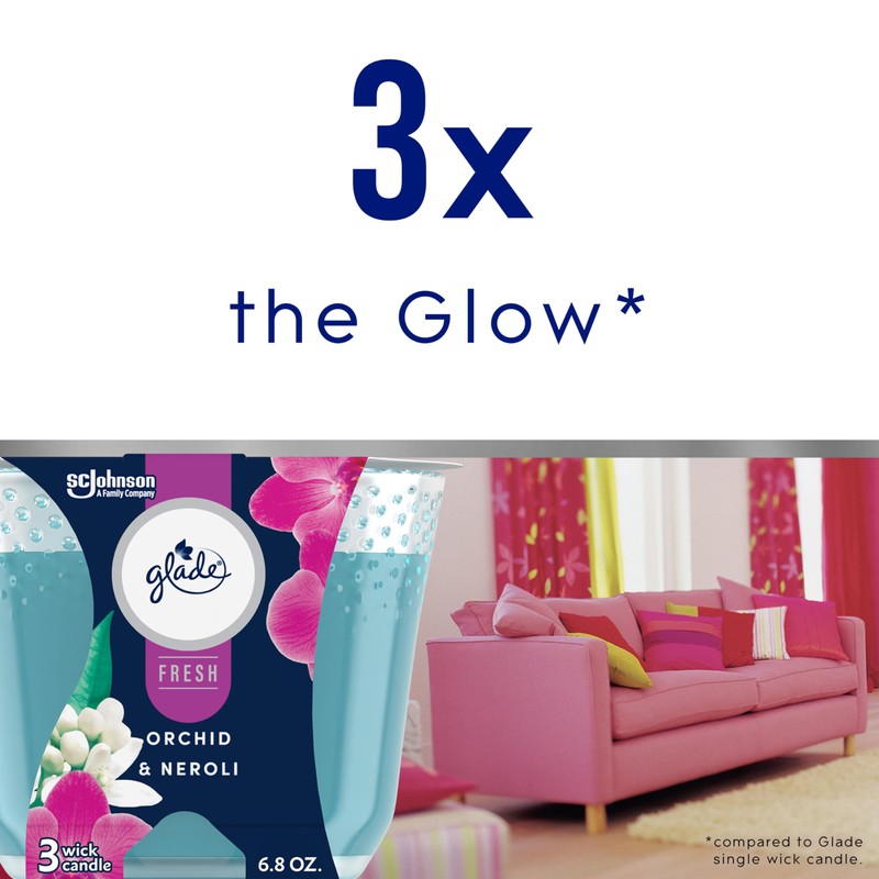 Glade Candle Orchid & Neroli, Fresh Collection, Fragrance Candle Infused with Essential Oils, Air Freshener Candle, 3-Wick Candle, 6.8 Oz, 3 Count