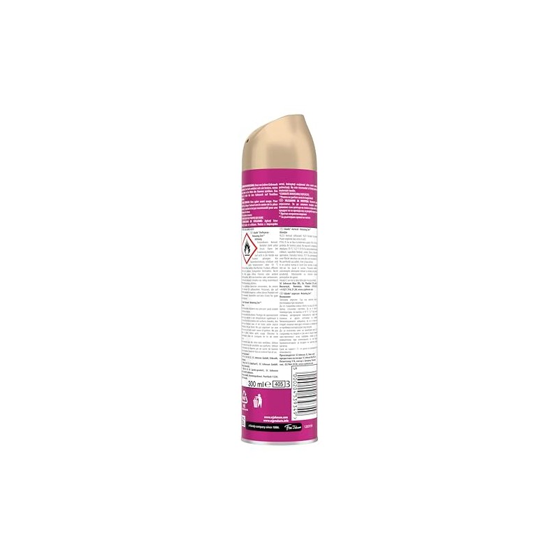 Entzündbares Aerosol. Behälter steht unter Druck: Kann bei Erwärmung bersten. Darf nicht in die Hände von Kindern gelangen. Vor Sonnenbestrahlung schützen. Nicht Temperaturen über 50 °C aussetzen. Von Hitze, heißen Oberflächen, Funken, offenen Flammen und anderen Zündquellen fernhalten. Nicht rauchen. Nicht gegen offene Flamme oder andere Zündquelle sprühen. Nicht durchstechen oder verbrennen, auch nicht nach Gebrauch. Behälter nur völlig restentleert der Wertstoffsammlung zuführen. Nur in gut gelüfteten Bereichen verwenden. An einem kühlen, trockenen Ort aufbewahren. Personen, die auf Duftstoffe empfindlich reagieren, sollten dieses Produkt mit Vorsicht verwenden. Raumdüfte sind kein Ersatz für gute Haushaltshygiene.
