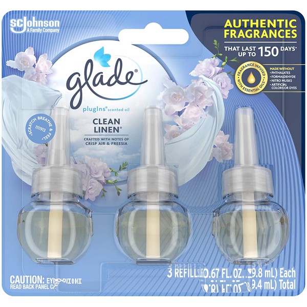 - Glade Clean Linen PlugIns Scented Oil freshens rooms with a long-lasting scented oil diffuser