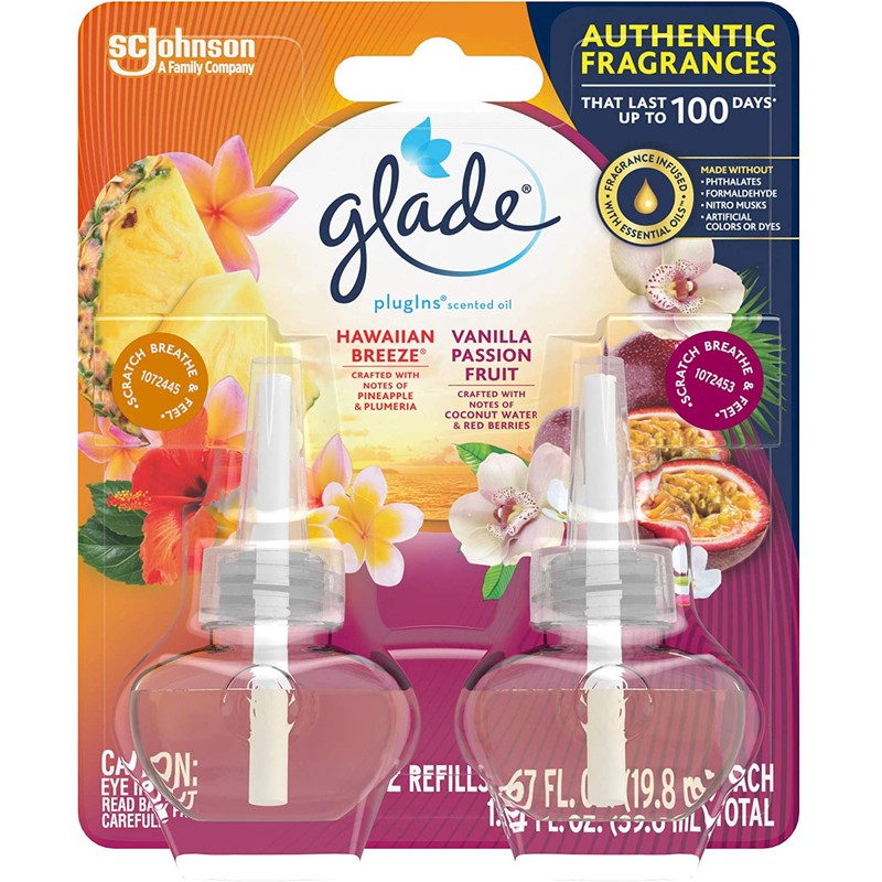 - Glade Hawaiian Breeze & Vanilla Passion Fruit PlugIns Scented Oil freshens rooms with a long-lasting scented oil diffuser