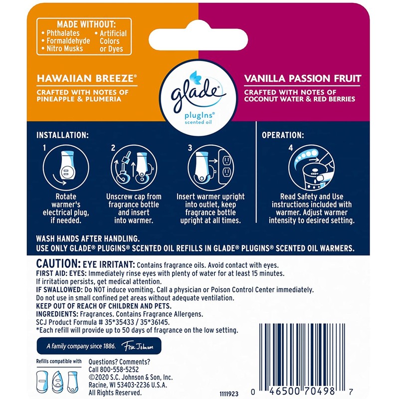 Glade PlugIns Refills Air Freshener, Scented and Essential Oils for Home and Bathroom, Hawaiian Breeze & Vanilla Passion Fruit, 1.34 Oz, 2 Count