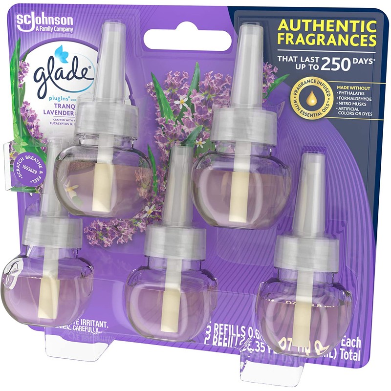 Glade PlugIns Refills Air Freshener, Scented and Essential Oils for Home and Bathroom, Tranquil Lavender & Aloe, 3.35 Fl Oz, 5 Count