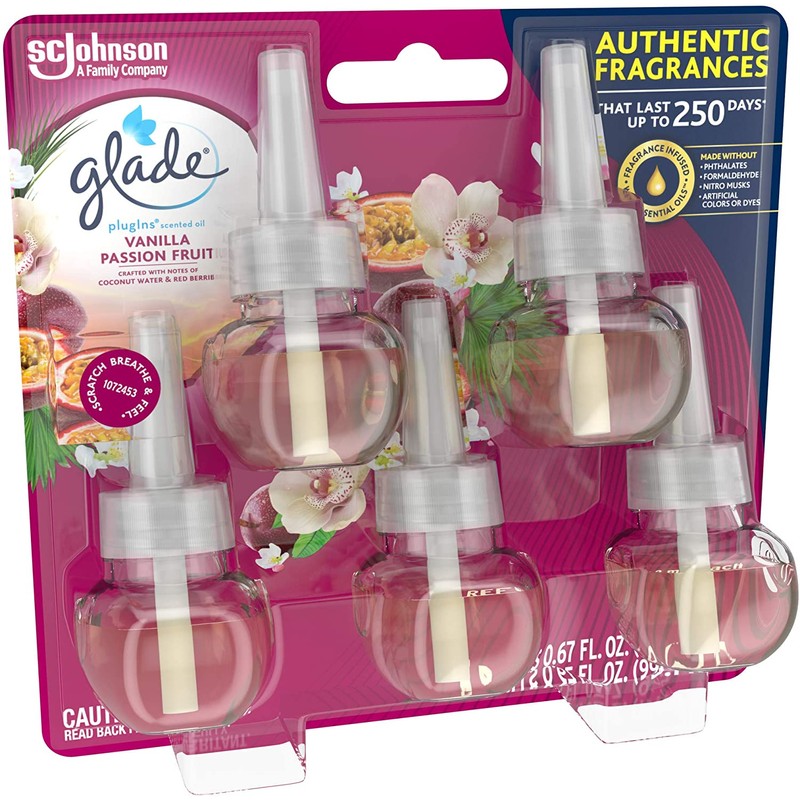 Glade PlugIns Refills Air Freshener, Scented and Essential Oils for Home and Bathroom, Vanilla Passion Fruit, 3.35 Fl Oz, 5 Count