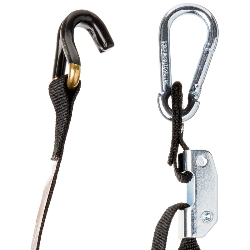 • Rubber coated attachment hooks prevent scratches and improve grip on anchor points