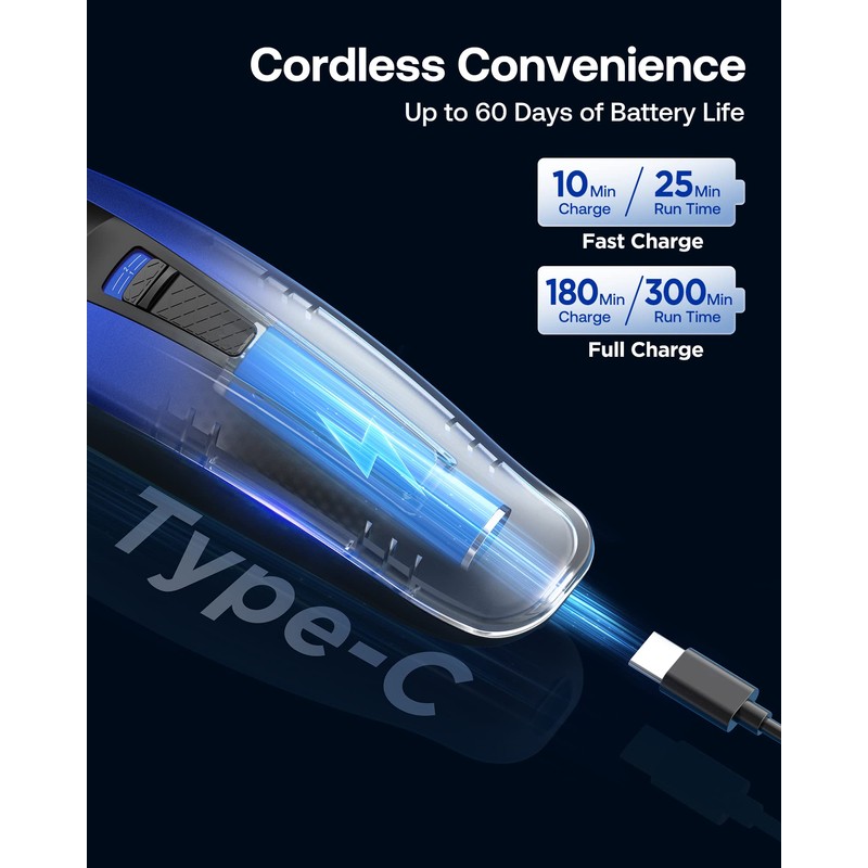 The clipper includes a heavy duty turbo motor that delivers exceptional power for no-snag cutting. The highest speed could reach 7000+ rpm during Turbo+ mode.