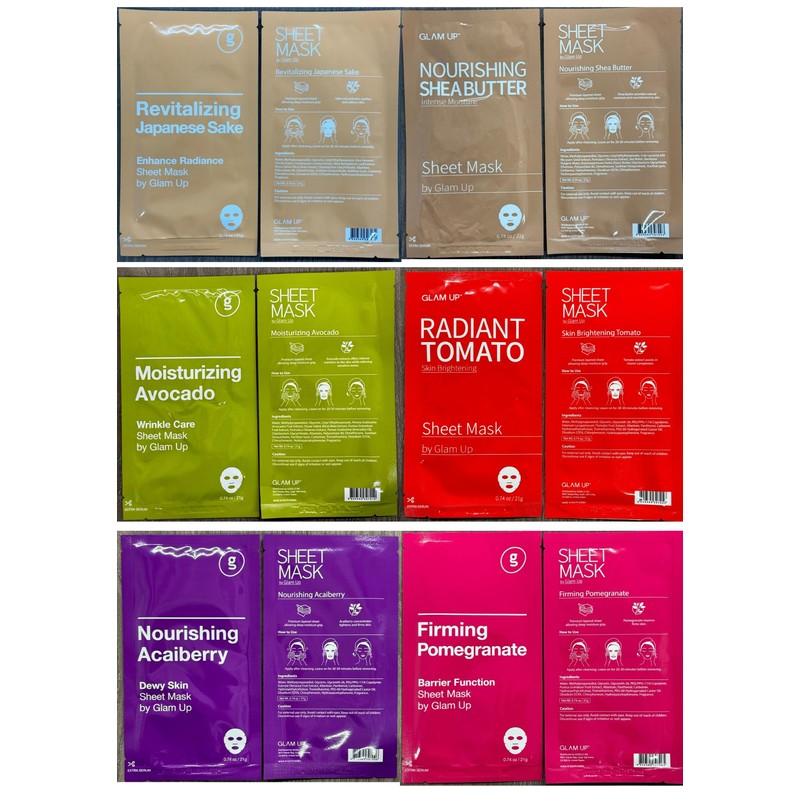 GLAM UP Premium Facial Sheet Mask 12 Combo (Pack of 12) | Clean Face Masks Skincare, Hydrating Face Masks, Moisturizing, Soothing, Beauty Mask For All Skin Type Variety Beauty Mask Set