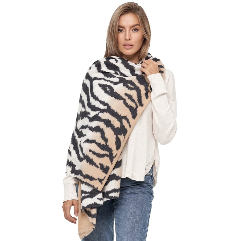 A cuddly, warm and beautiful women's poncho scarf with different animal prints such as leopard or tiger pattern that enchants any look.