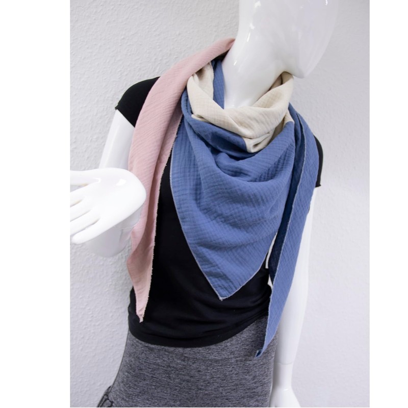 Glamexx24 XXL Women's Scarf, Many Colours, Unisex, Triangular Shape, Extra Large Summer Scarf, Autumn Scarf, Thin Scarf, Soft, Many Colour Combinations, Lightweight Scarf, Pink-denim blue-beige