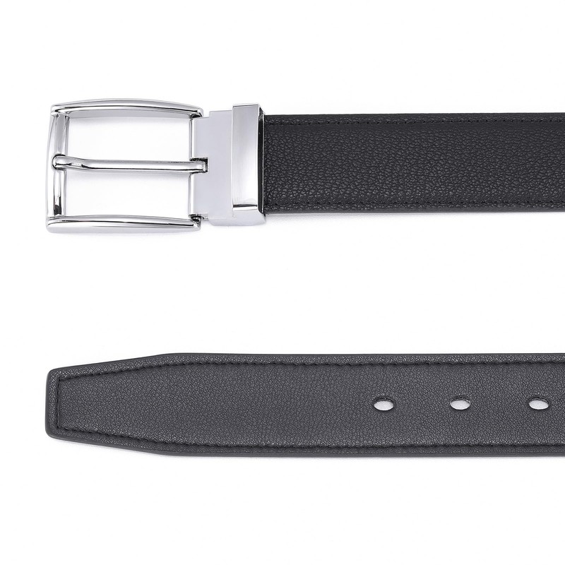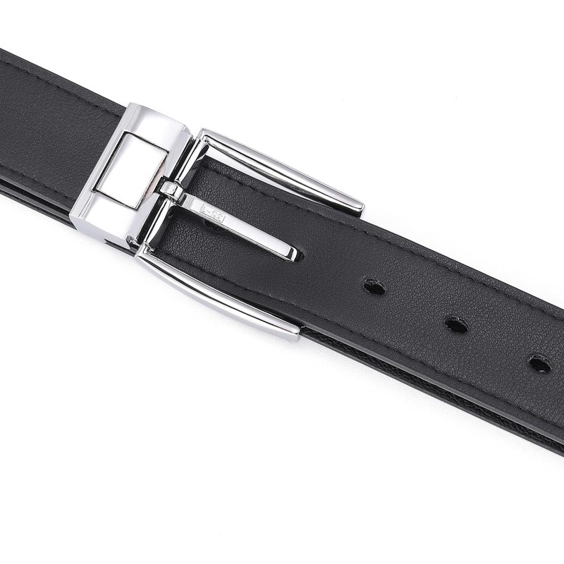 Glamicci Men's Genuine Leather Suit Belt 3.3cm wide |Scratch Resistant Coated Real Leather Black Belt For Men Style-26.06 (Black-Silver Buckle, 34-38” Waist (117cm/46”Strap))