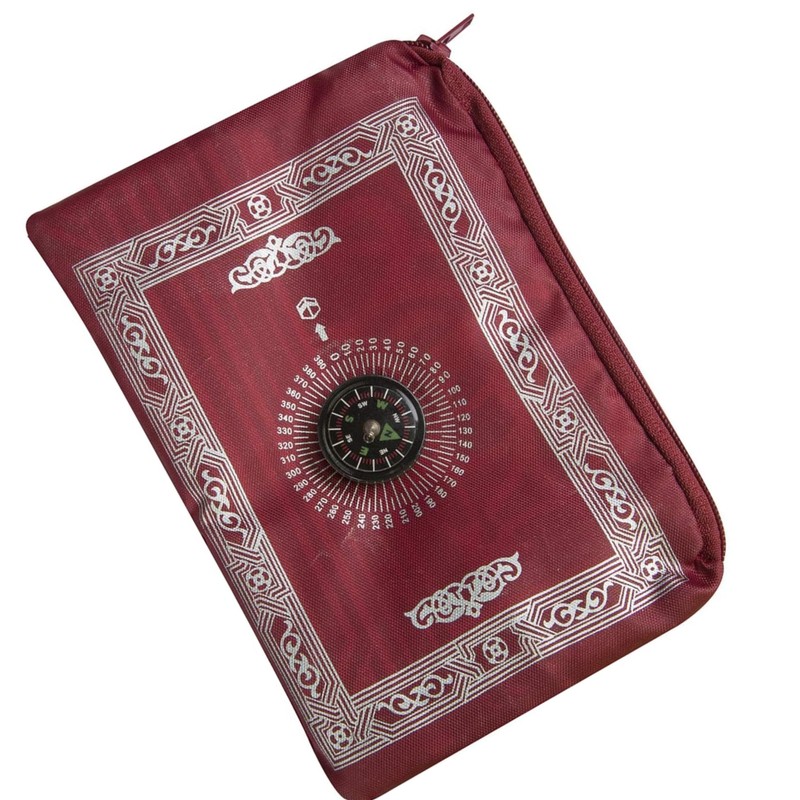 Glamified Muslim Prayer Mat Travel Pocket Friendly Islamic Prayer Mat, Muslim Prayer Rug With Qibla Finder Compass - Maroon