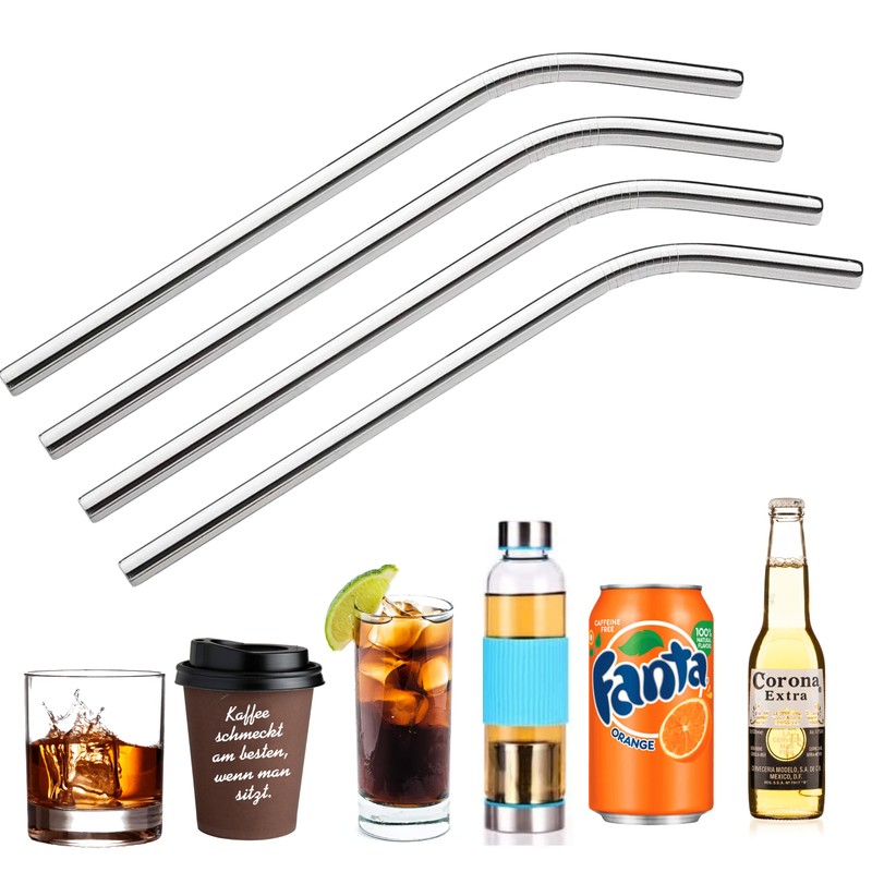 - Eco-Friendly and Reusable: This set includes 4 pieces of stainless steel bent straws that are designed to be a sustainable alternative to single-use plastic straws. By choosing these reusable straws, you contribute to reducing plastic waste and help protect the environment.