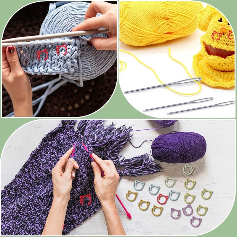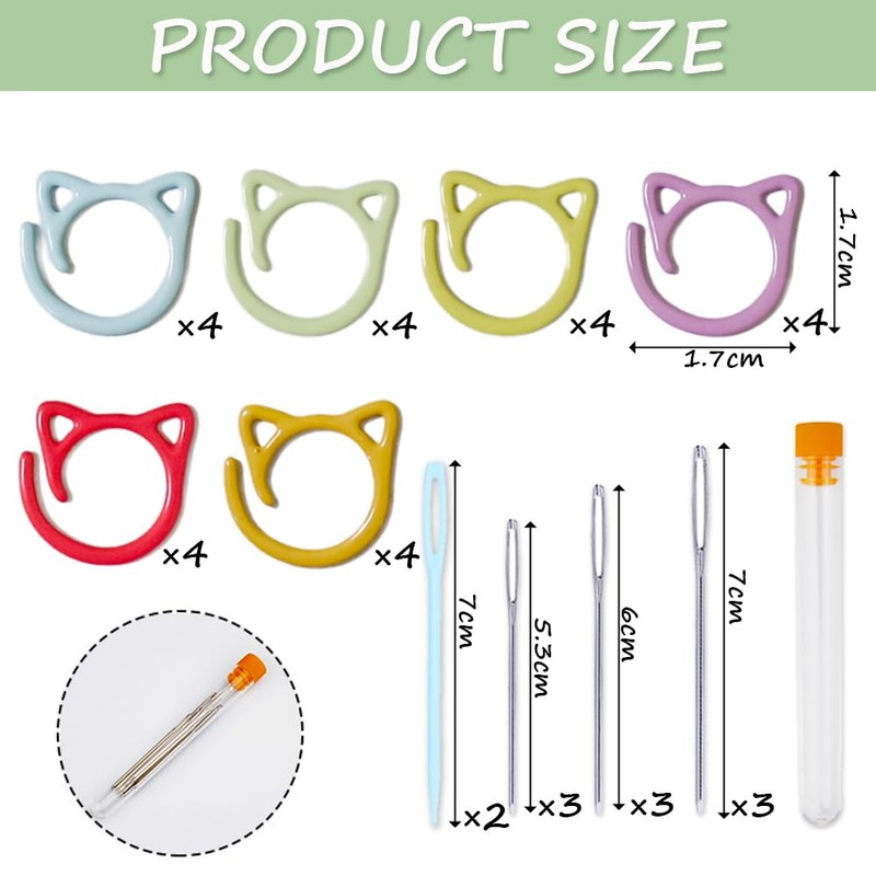 - Package includes: This kit offers you 24 stitch markers, 9 pieces blunt hand sewing needles size, 1 needle storage bottle, 2 plastic wool stitching needles with large eye.