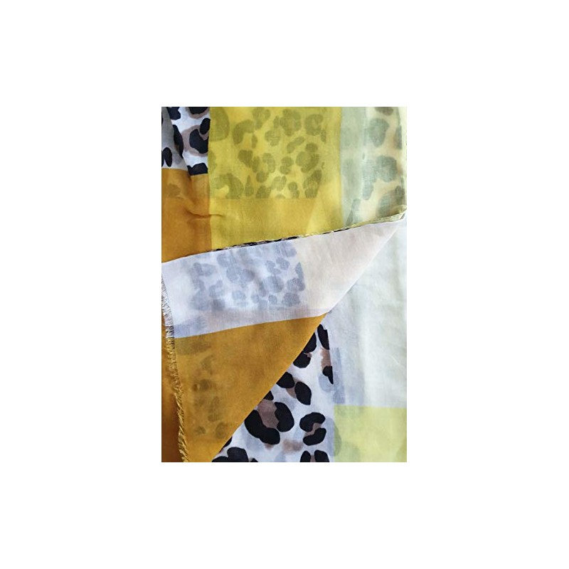 GlamLondon Women's Leopard Print Scarf Multi Coloured Border (BM33-Yellow)