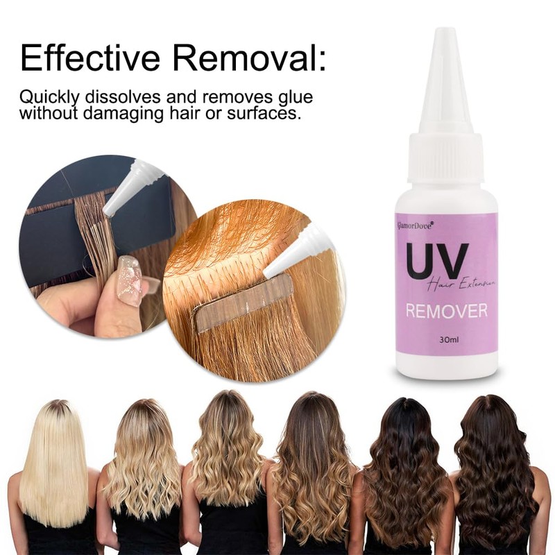 - Time Saver: The uv glue remover is specially designed to remove UV hair extension glue, which can melt the glue to small pieces in seconds. Then you can remove all the glue with the mini stainless steel comb.
