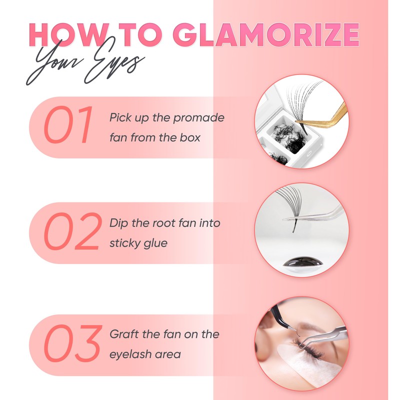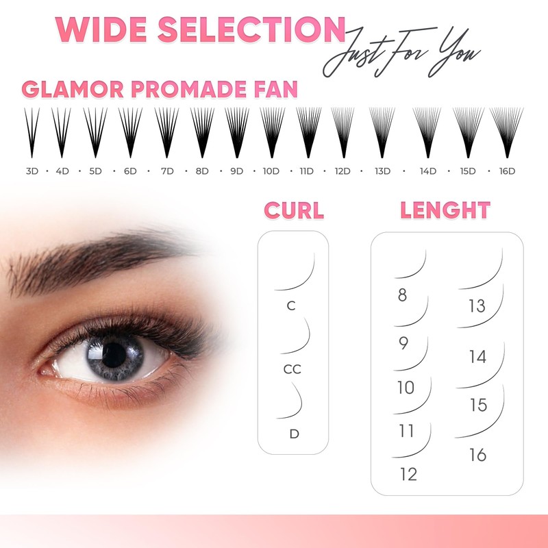 - 💗 A LARGE NUMBER OF PROMADE FANS: Our lash clusters provide you with 750 soft, comfortable, and cost-effective Promade Lashes Natural Look while creating glamorous promade fans for your customers. Glamoreyelash Promade- Not- Premade loose fans eyelash extensions are made entirely by the Glamor meticulous team, so you don't have to be concerned about our high-quality eyelash extension kit.