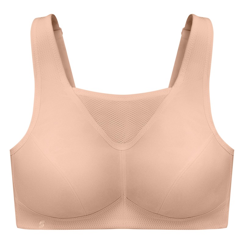 - Breathable open-air mesh camisole design provides upper bust containment for secure fit