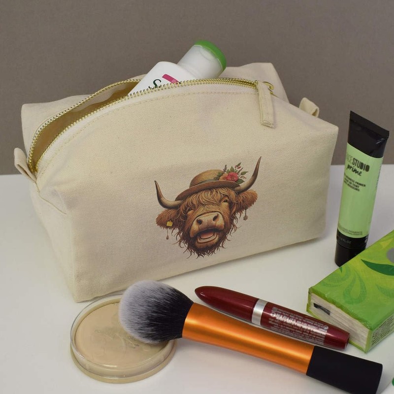 'Glamorous Highland Cow' Canvas Wash Bag/Makeup Case (CS00042212)
