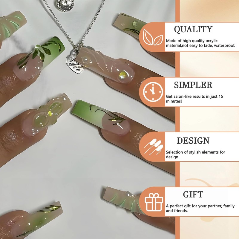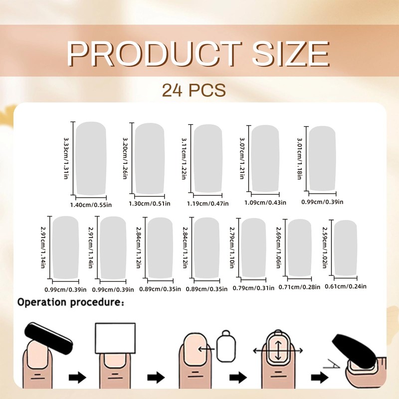 - Safety and environmental protection: use safe, non-toxic and environmentally friendly acrylic nail glue, 24 different sizes of false nails, allow you to choose the right nail size.
