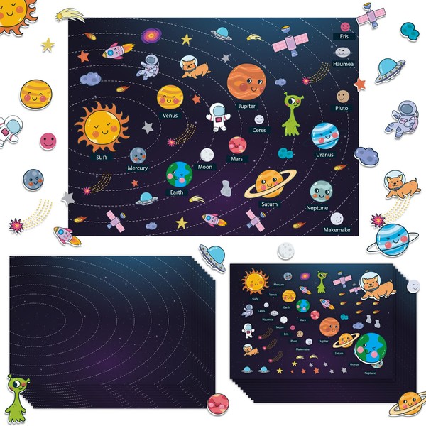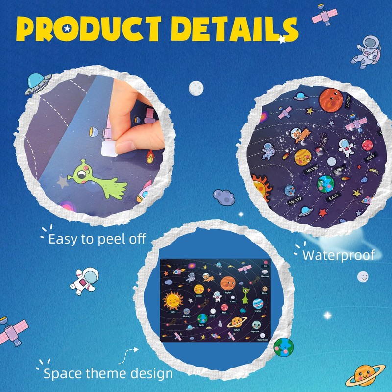 - [Safe, Easy, and Ready for Little Hands]: Made from kid-safe materials with vibrant colors, these solar system stickers are classroom-friendly and easy to use. No cutting or glue needed—just peel and stick.