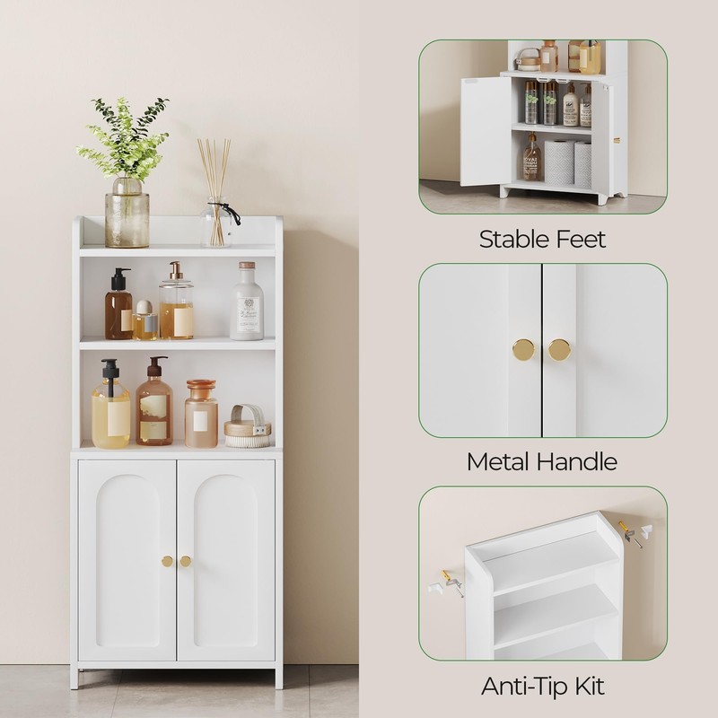 - 【Stable and Safe】Made of quality particleboard, the surface of this bathroom storage cabinet is easy to wipe clean. The included anti-tip kit enhances its stability and gives you a safer living space.