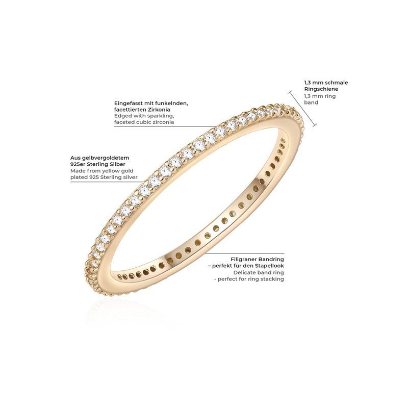 Glanzstücke München Women's Ring Sterling Silver Yellow Gold-Plated Zirconia White - Memory Ring Stacking Ring Filigree, Silver, Cubic Zirconia