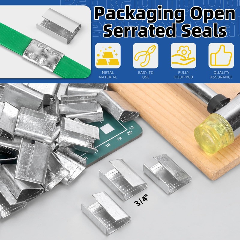 - ♛【Multiple Application】: These metal buckle seals are suitable for sealing the openings of polypropylene strapping bands, securing medium to large goods for storage and transportation, such as wooden and heavy duty pallets. Can also be used with all strapping sealers, creasing machines and combination tools.