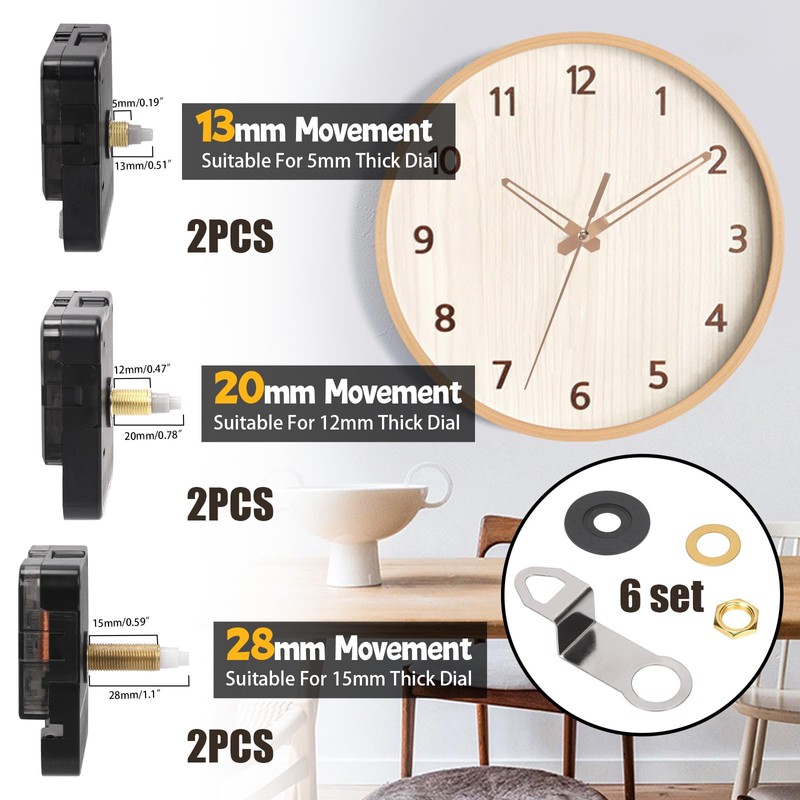 - ♛【Size Details】: The clock movement total shaft lengths are 13mm/0.51in, 20mm/0.78in, 28mm/1.1in. The jumping seconds movement is suitable for clock panels in 5mm/0.19in, 12mm/0.47in and 15mm/0.59in thicknesses. The right size is easy for you to use and store.