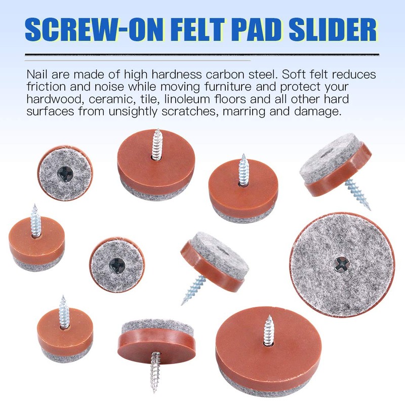 - ♚【Screw-on Designed】: Our furniture felt pads are designed with screw be screwed into the bottom of chair legs, and the screw is not easy to slip out unless you use a screwdriver. They are solid and stable than peel-and-stick type of felt pads.