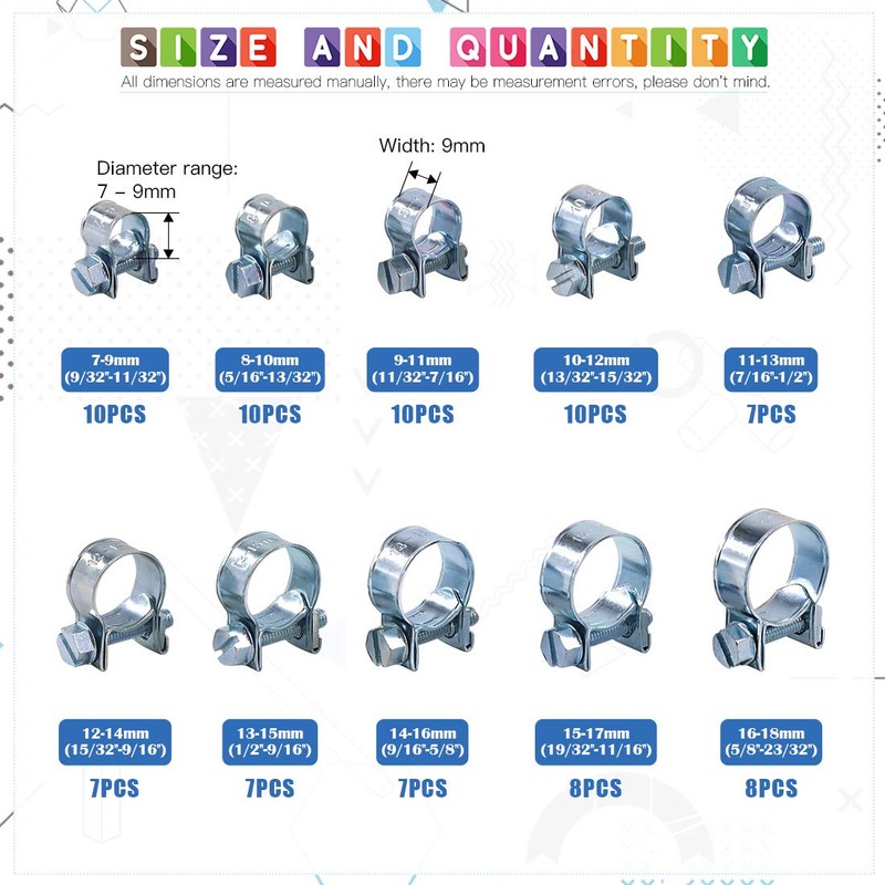 Glarks 84Pcs 10 Size Mini Fuel Injection Style Hose Clamp Assortment Kit For ...